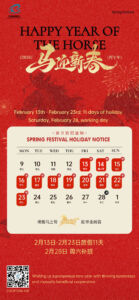 Ainda aceitaremos encomendas durante o período do Festival da Primavera, e a produção será retomada após o dia 25. Se você tiver alguma dúvida durante o feriado, sinta-se à vontade para nos ligar.🐴🐴